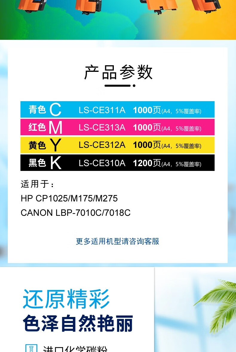 适用机型  :   HP CP1025/M175/M275,CANON LBP-7010C/7018C