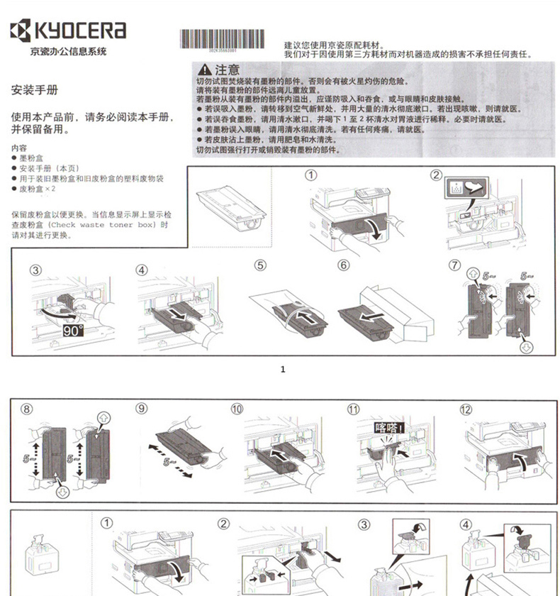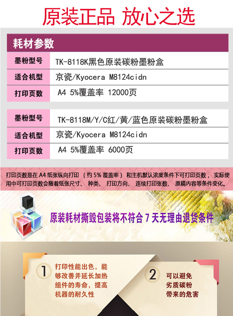 包装清单  :   京瓷(Kyocera)TK-8118K 黑色原装硒鼓墨粉盒 适用于京瓷M8124cidn 约12000页