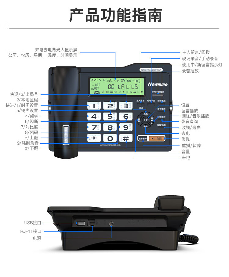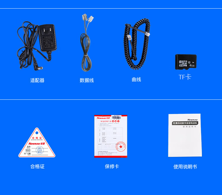包装清单  :   电话机x1,适配器x1,手柄曲线x1,电话线x1,说明书x1,合格证x1,维修卡x1,SD卡x1