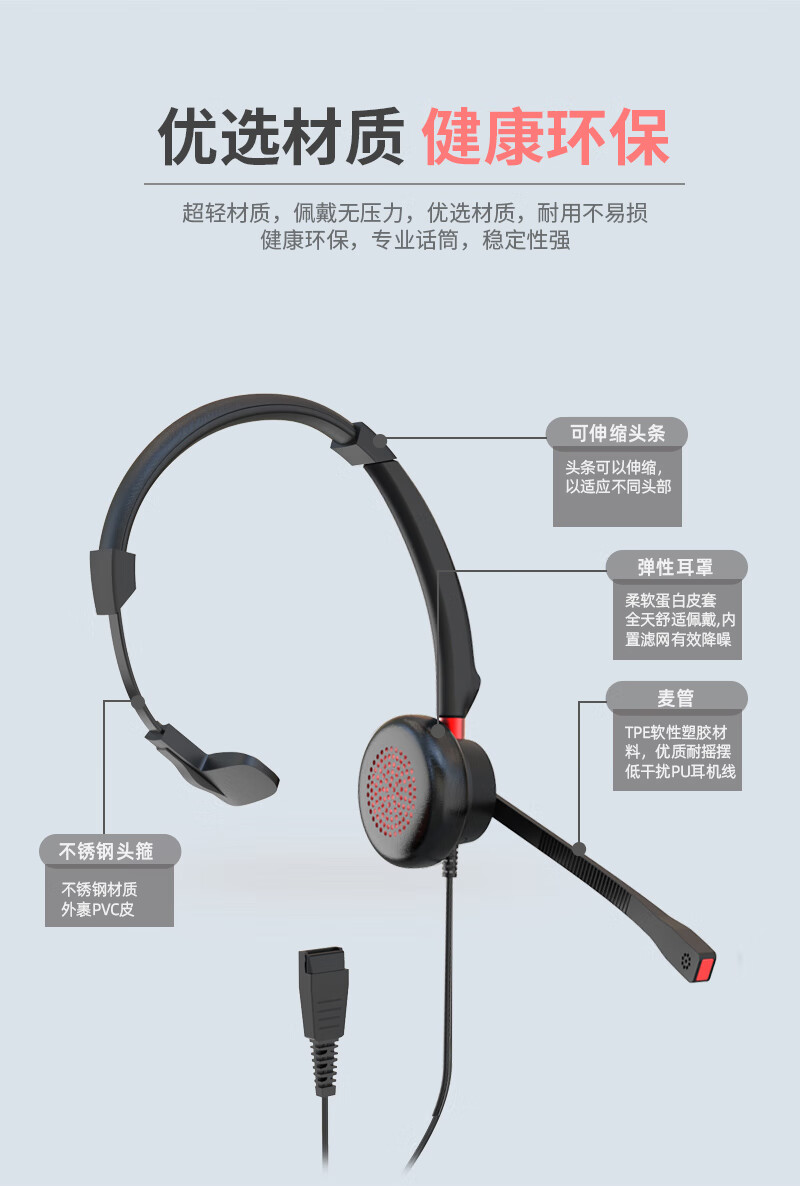 包装清单  :   话务耳机×1 , 备用耳棉×1,说明书×1,保修卡×1,合格证×1