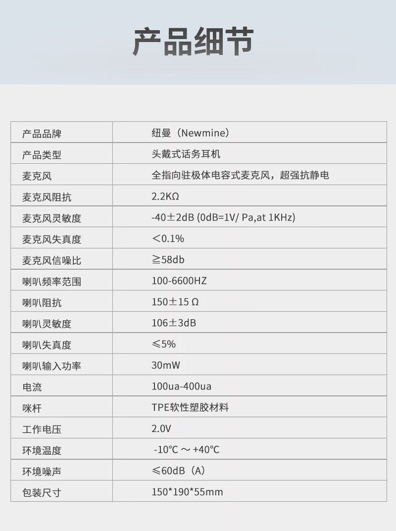 包装清单  :   话务耳机×1 , 备用耳棉×1,说明书×1,保修卡×1,合格证×1
