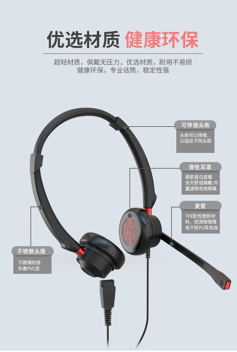 包装清单  :   话务耳机×1 , 备用耳棉×2,说明书×1,保修卡×1,合格证×1