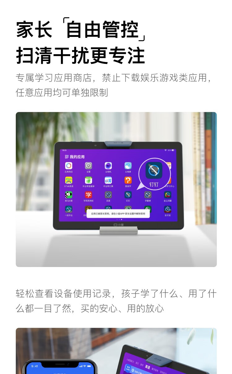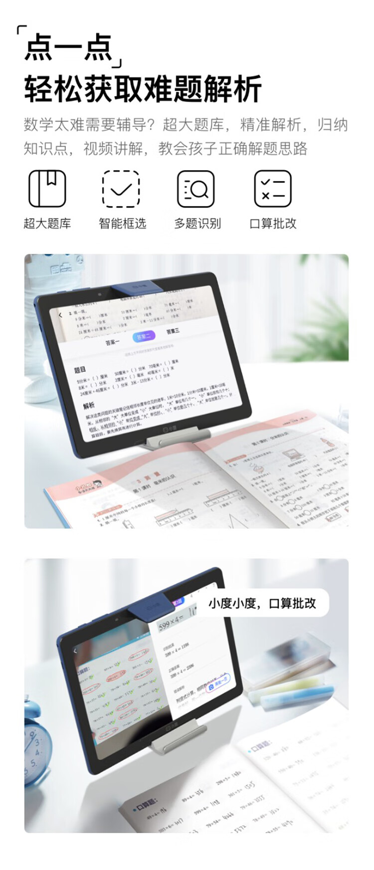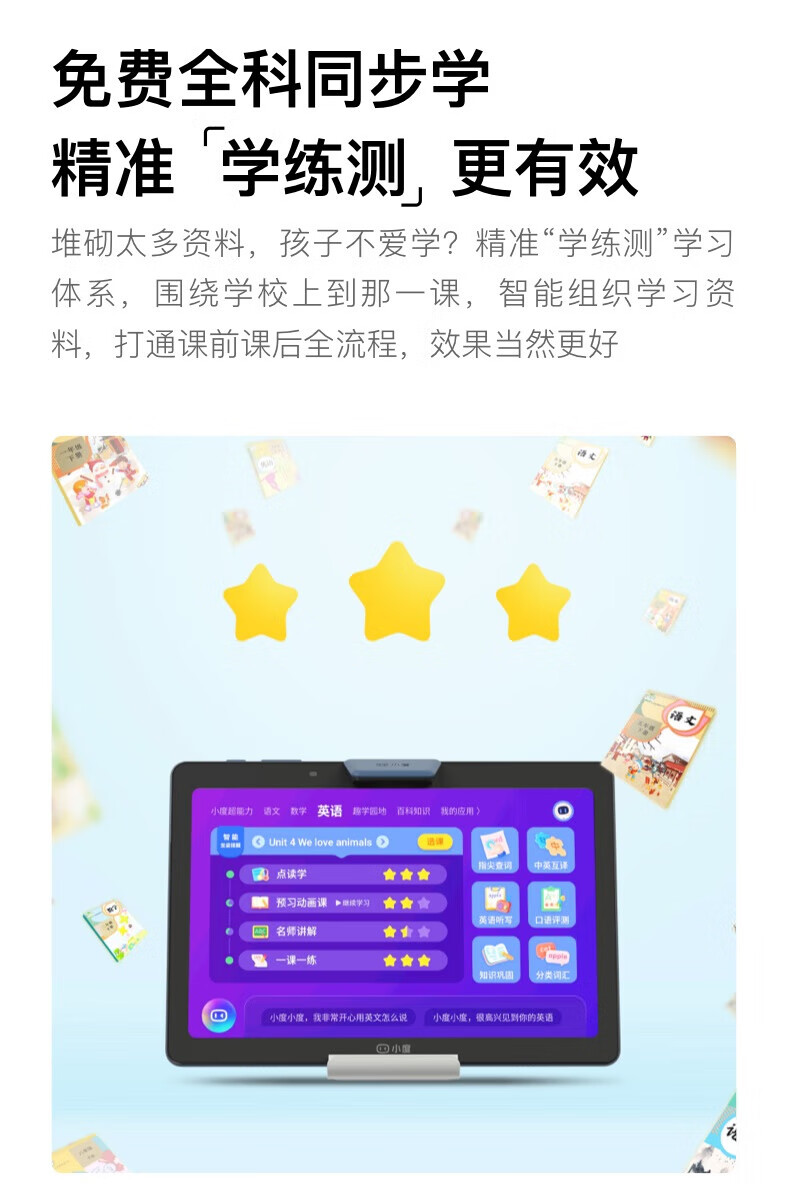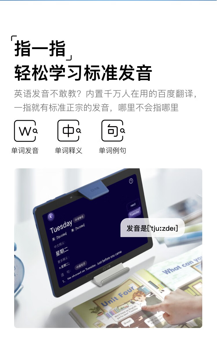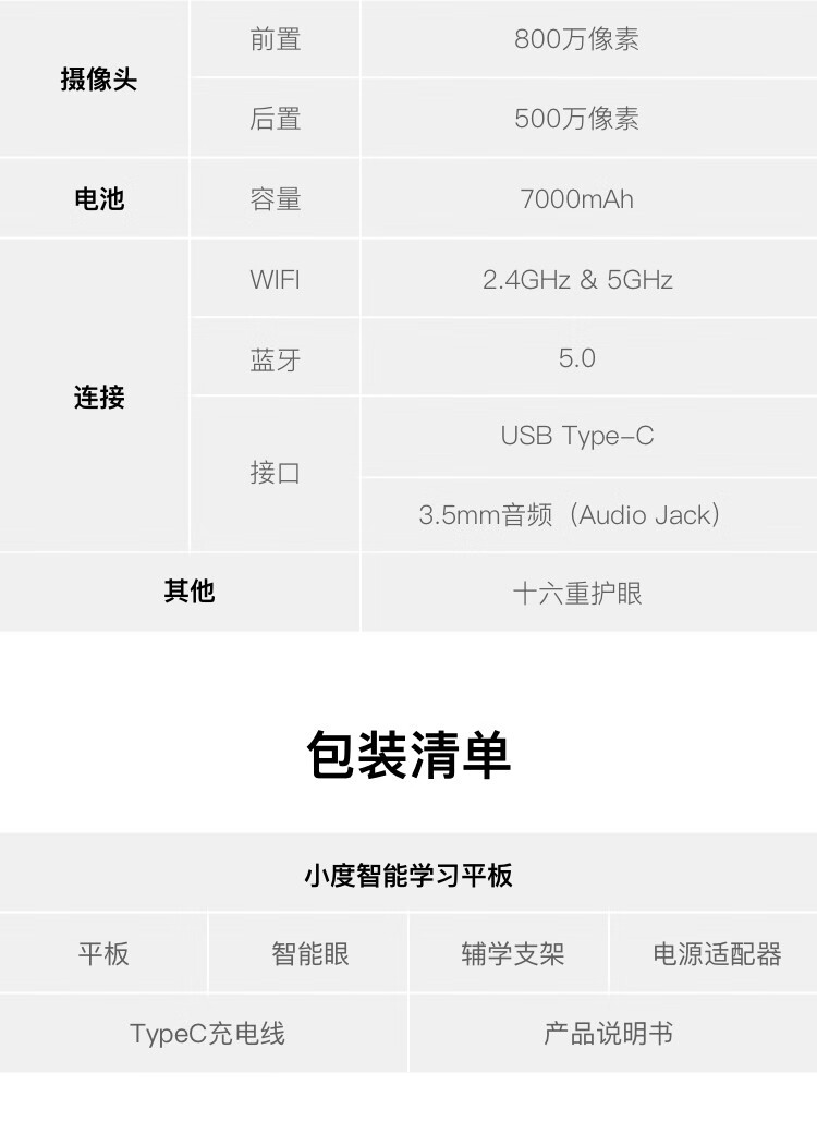 包装清单  :   学习平板*1;电源适配器*1;USB充电线*1;智慧眼棱镜*1;支架*1;功能说明册*1;说明书*1