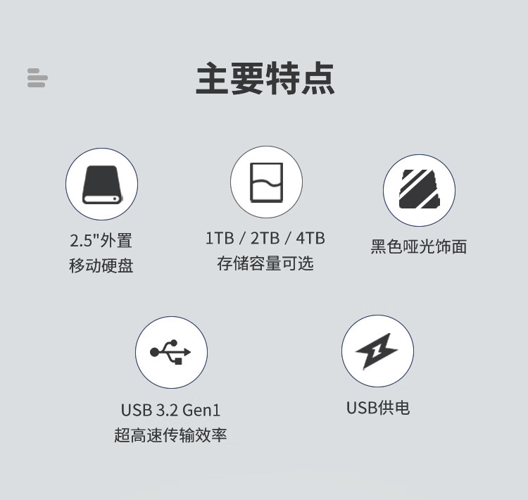 包装清单  :   移动硬盘 × 1,USB连接线 × 1,说明书 × 1
