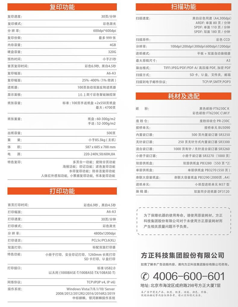 A4复印速度(彩色)  :   30