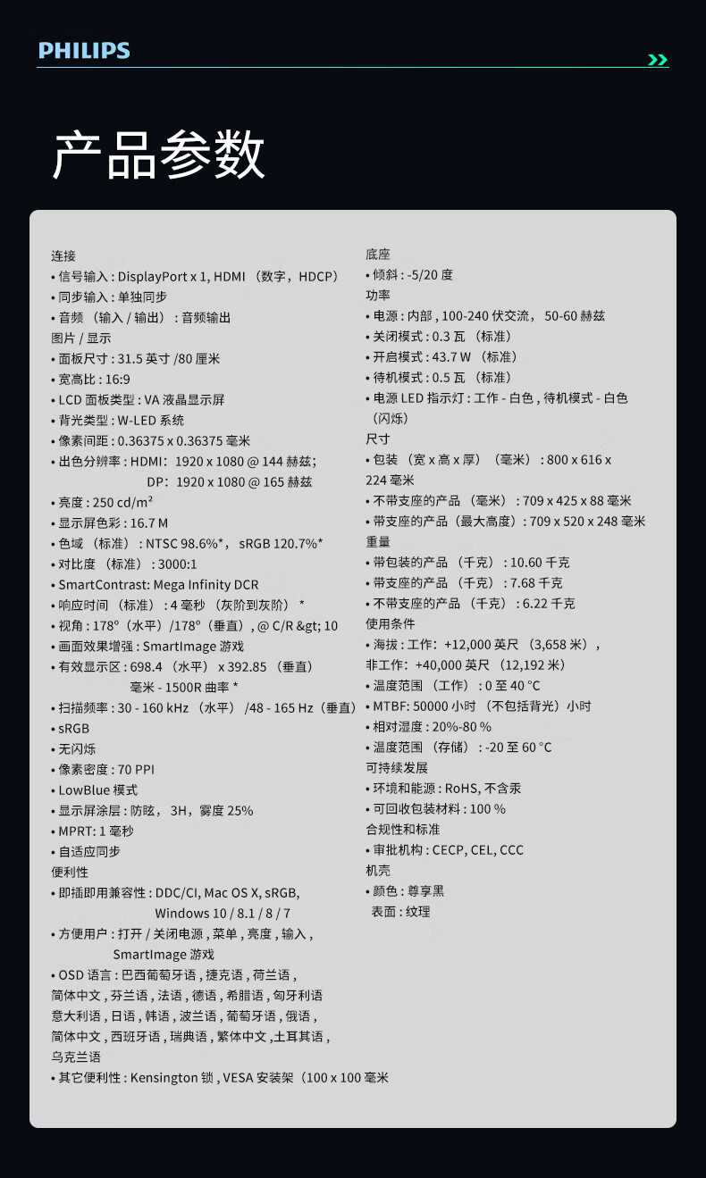 屏幕尺寸(英寸)  :   31.5