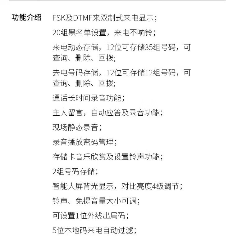 包装清单  :   座机*1,听筒*1,曲线*1,TF卡16G*1,电源适配器*1,电话线*1,说明书*1