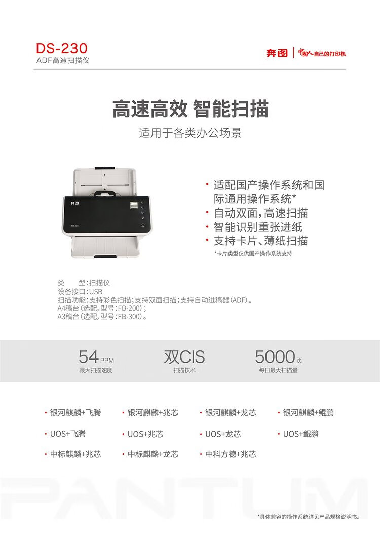 ADF彩色双面扫描速度(A4,200dpi)  :   100
