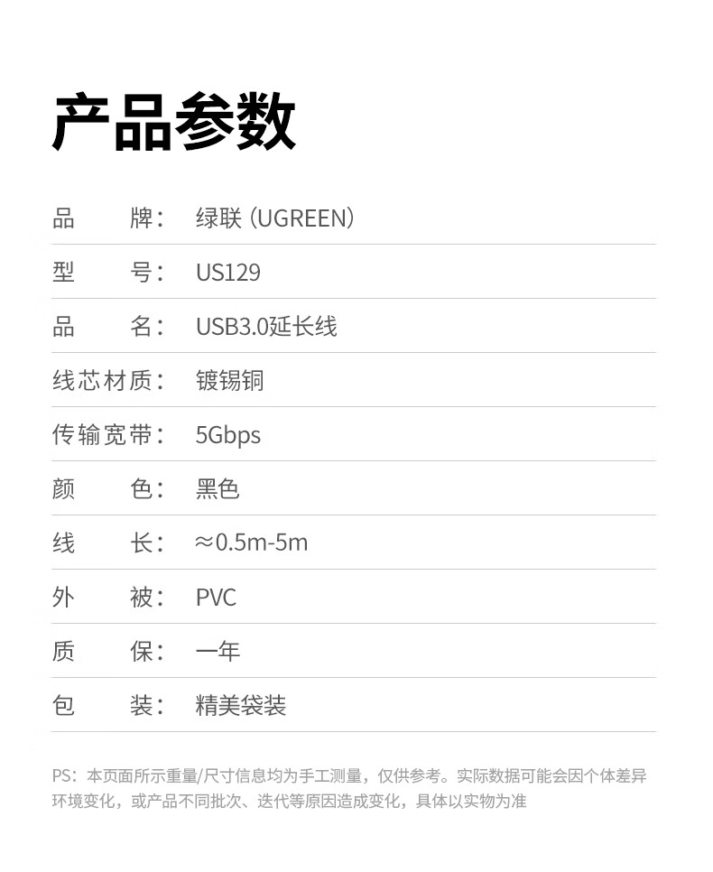包装清单  :   USB 3.0 公对母延长线2.0米 黑色 × 1