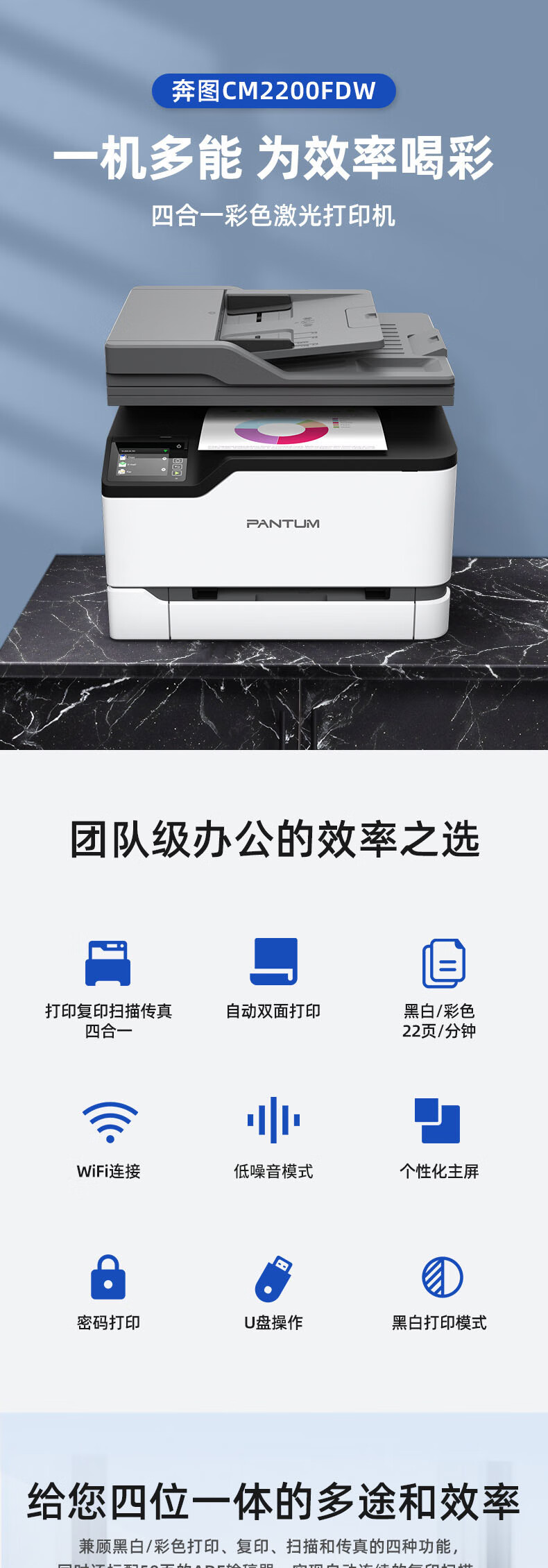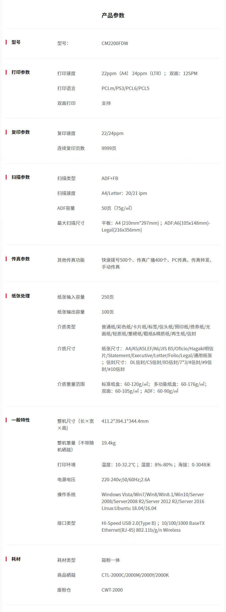 黑白打印速度(页/分钟 ppm)  :   22