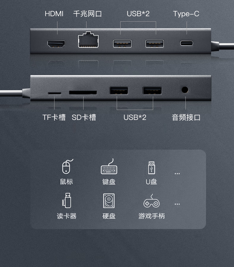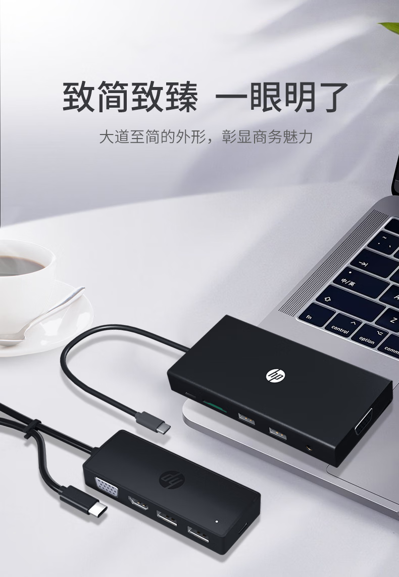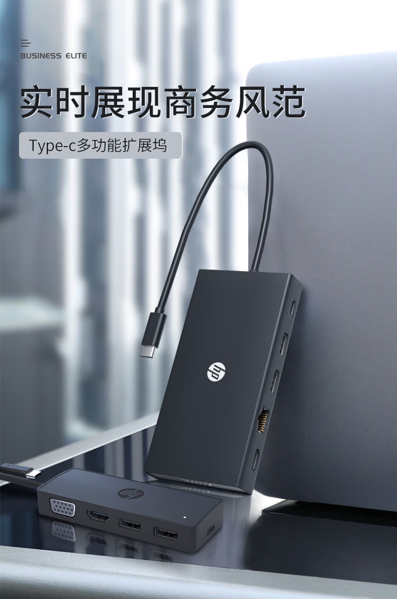 惠普/HP 235N8AA 网络连接设备 Type-C扩展坞转HDMI/VGA/千兆网口转接头 网线接口转换器 笔记本电脑拓展坞 1拖5