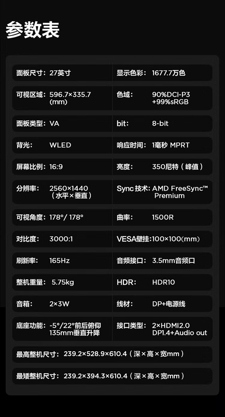 刷新率  :   165Hz