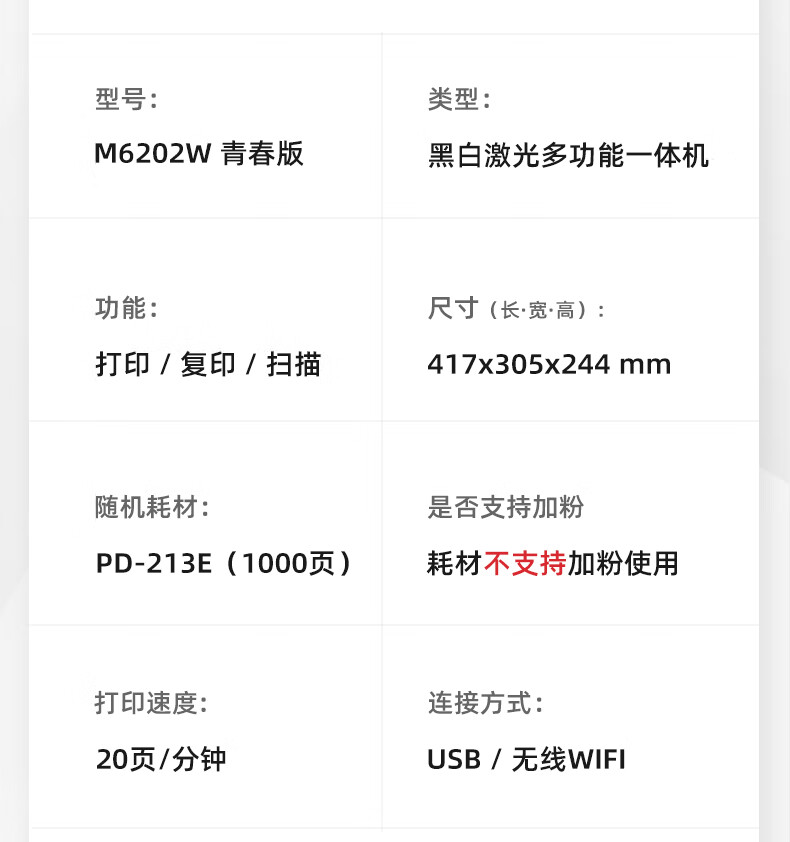 打印类型  :   黑白激光