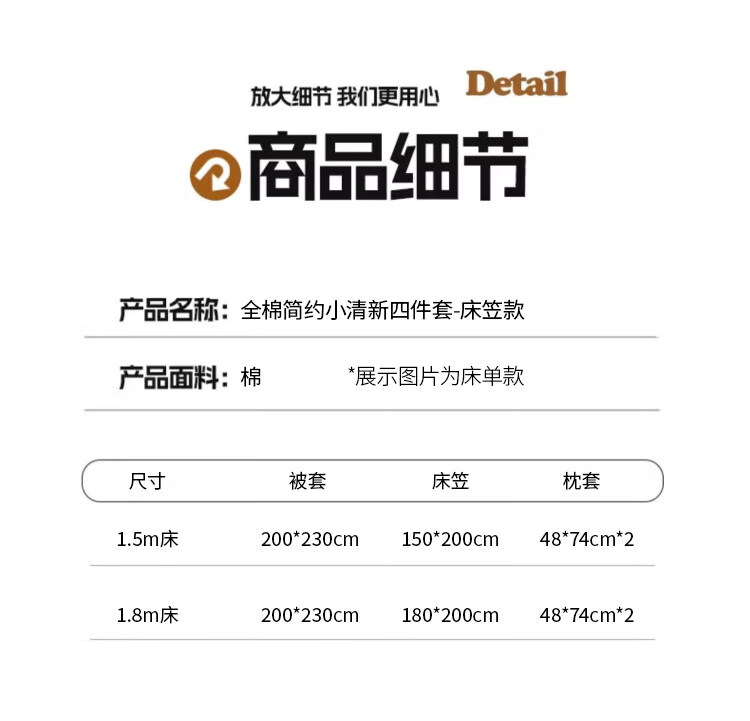 包装清单  :   四件套(枕套*2,被套*1,床笠*1)