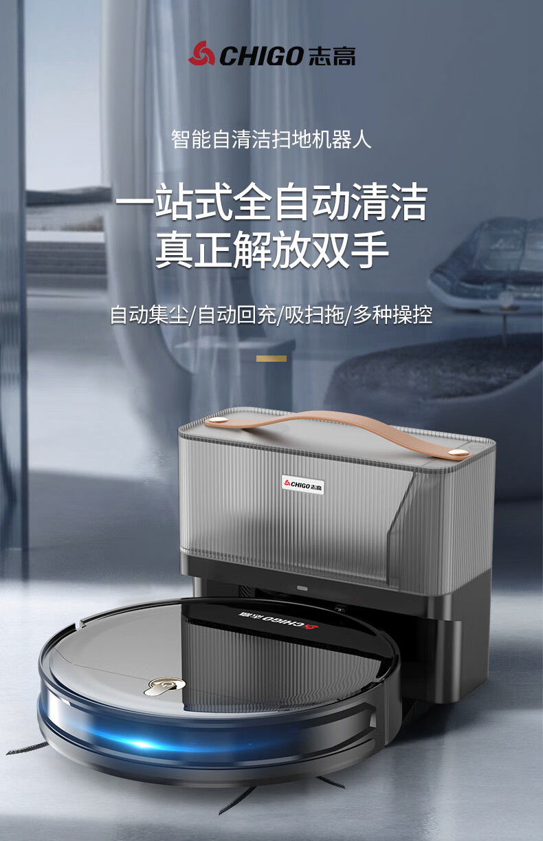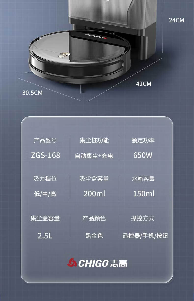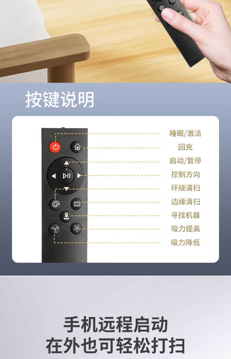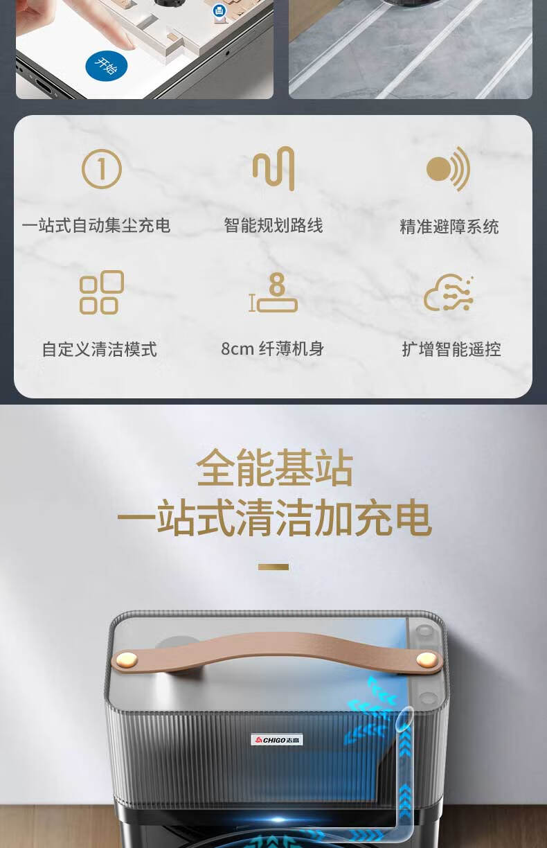 带手机涂鸦APP;带自动充电功能;带遥控器:带智能所点续扫:带智能集尘,可装2.5L垃圾:带陀螺仪路线规划行一行清洁:带水箱湿拖(水箱里可以加消毒水):耐用锂电池2600MA