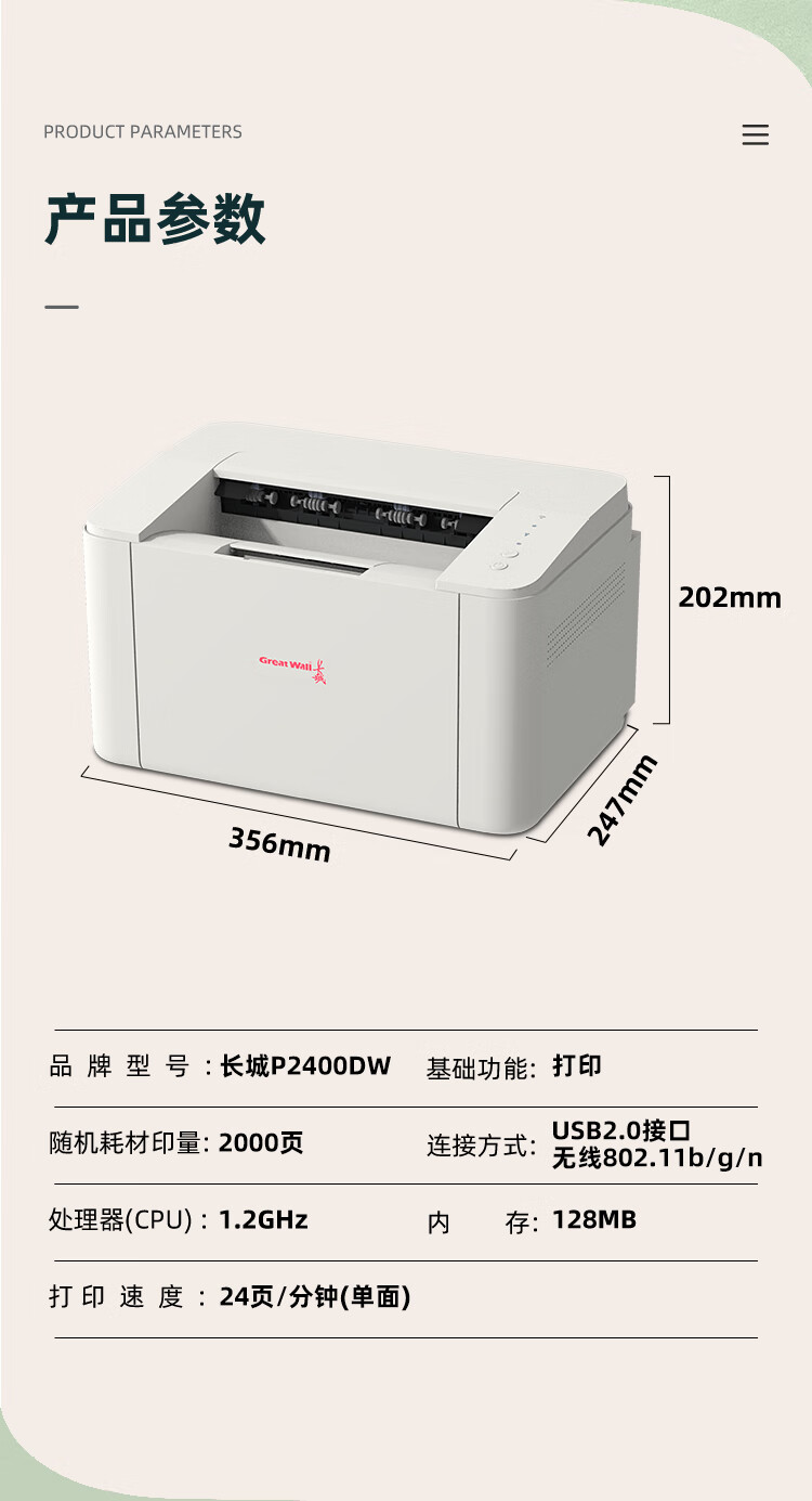 包装清单  :   打印机*1,保修卡*1,电源,数据线,保护材料,原包装