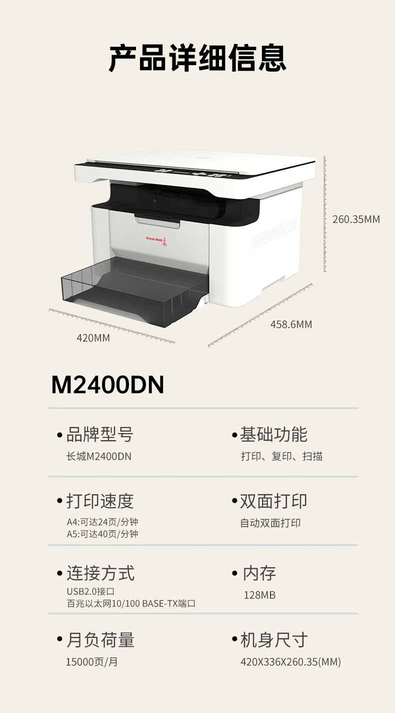 包装清单  :   打印机*1,保修卡*1,电源,数据线,保护材料,原包装