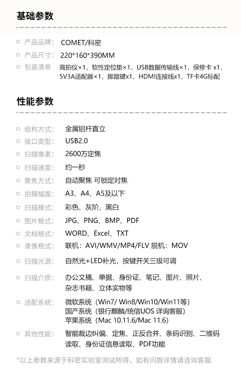 包装清单  :   高拍仪×1