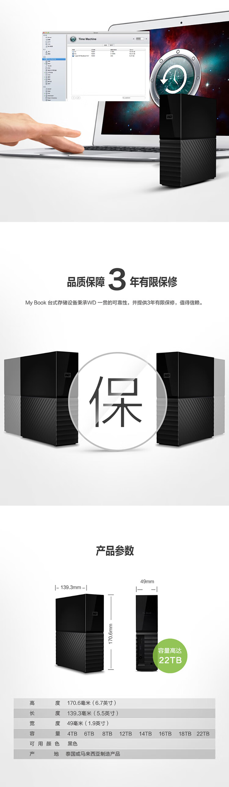 包装清单  :   台式硬盘、USB 3.0 数据线、交流电适配器、《快速安装指南