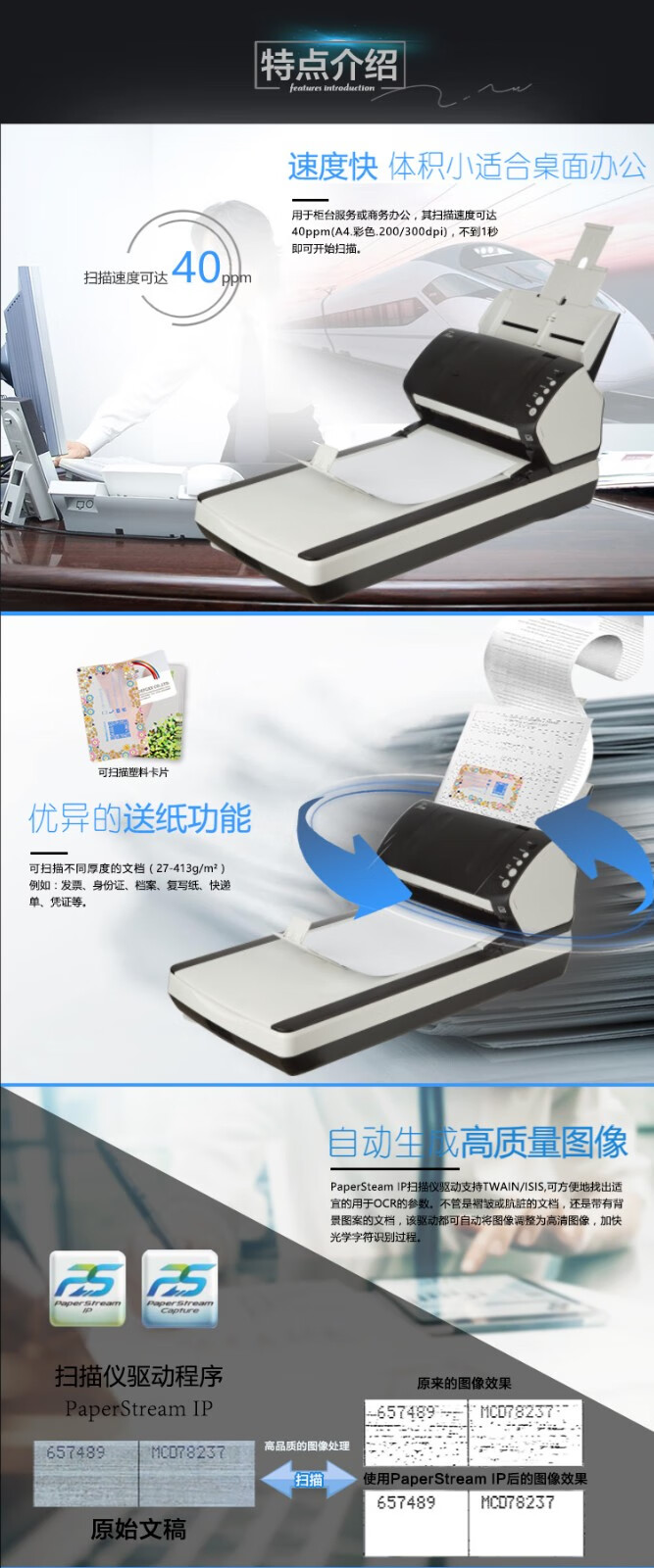 扫描速度  :   40ppm/80ipm每分钟