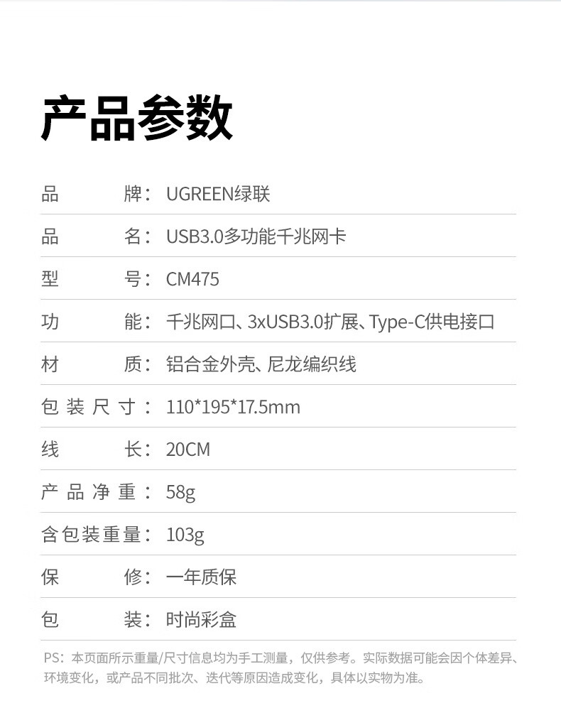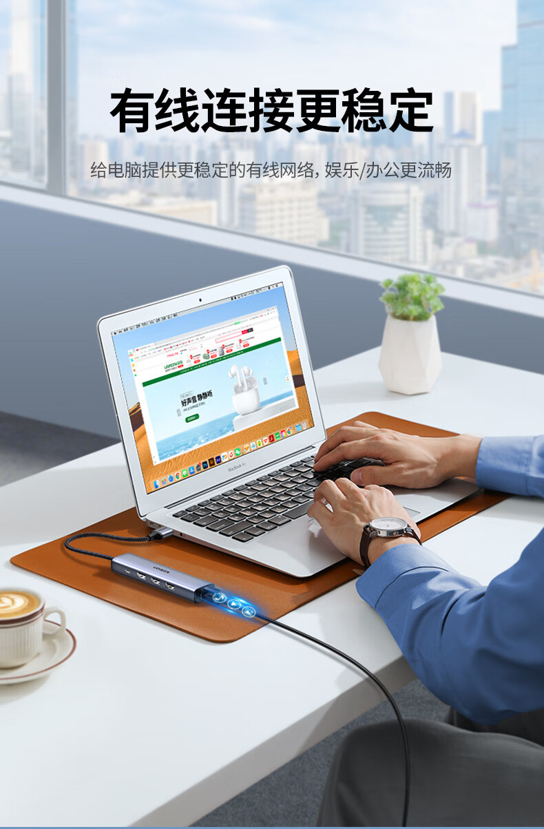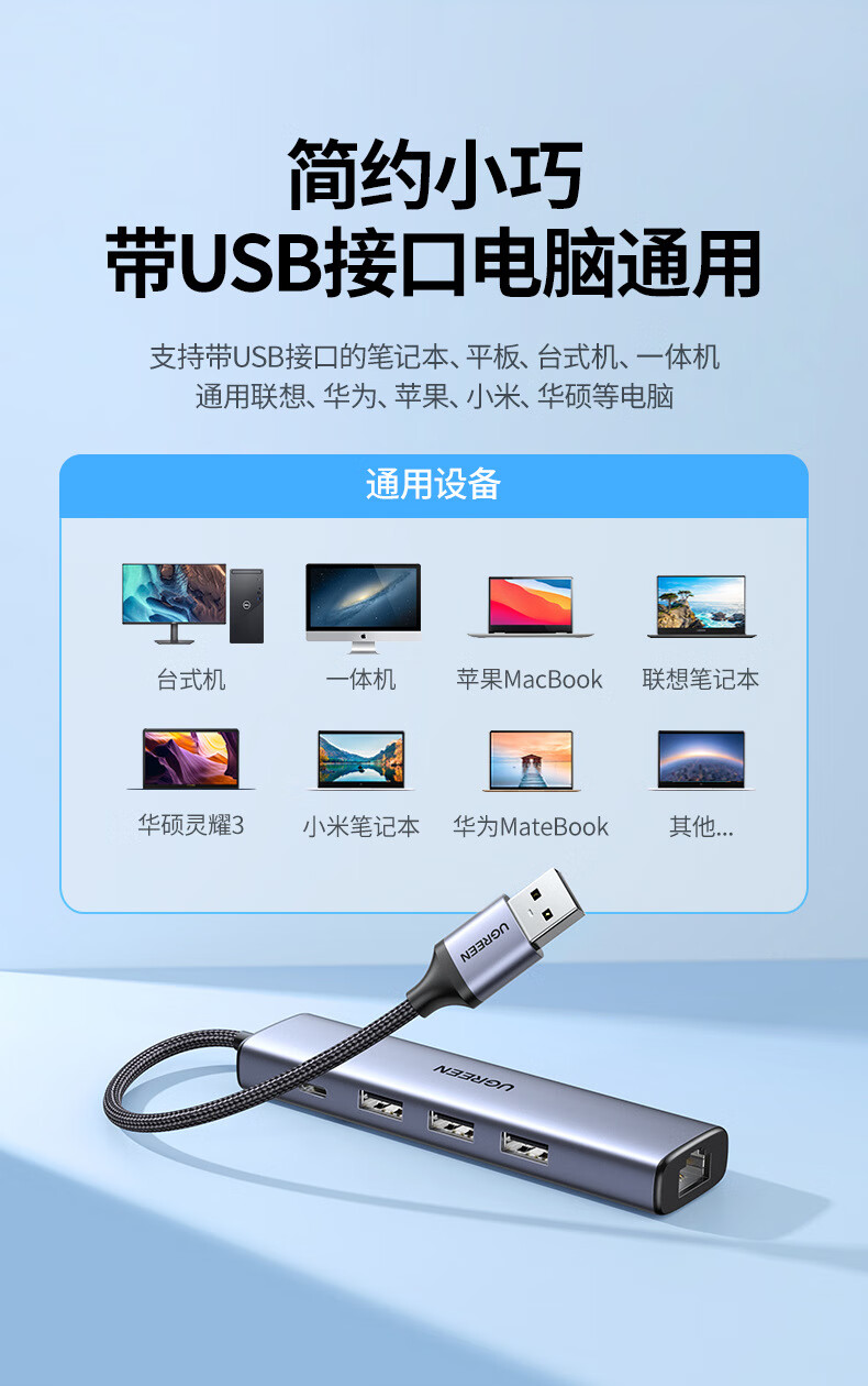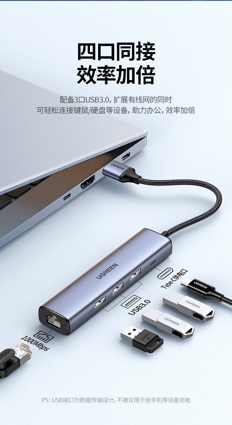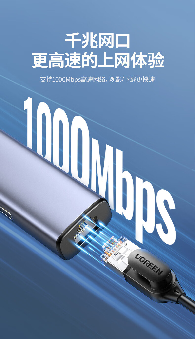 绿联/UGREEN CM252 网络连接设备 网线转接口usb转以太网口转换器扩展坞连接千兆