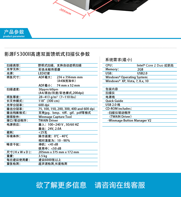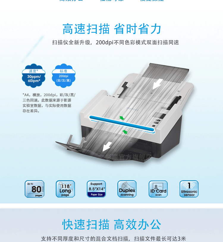ADF彩色双面扫描速度(A4,200dpi)  :   无