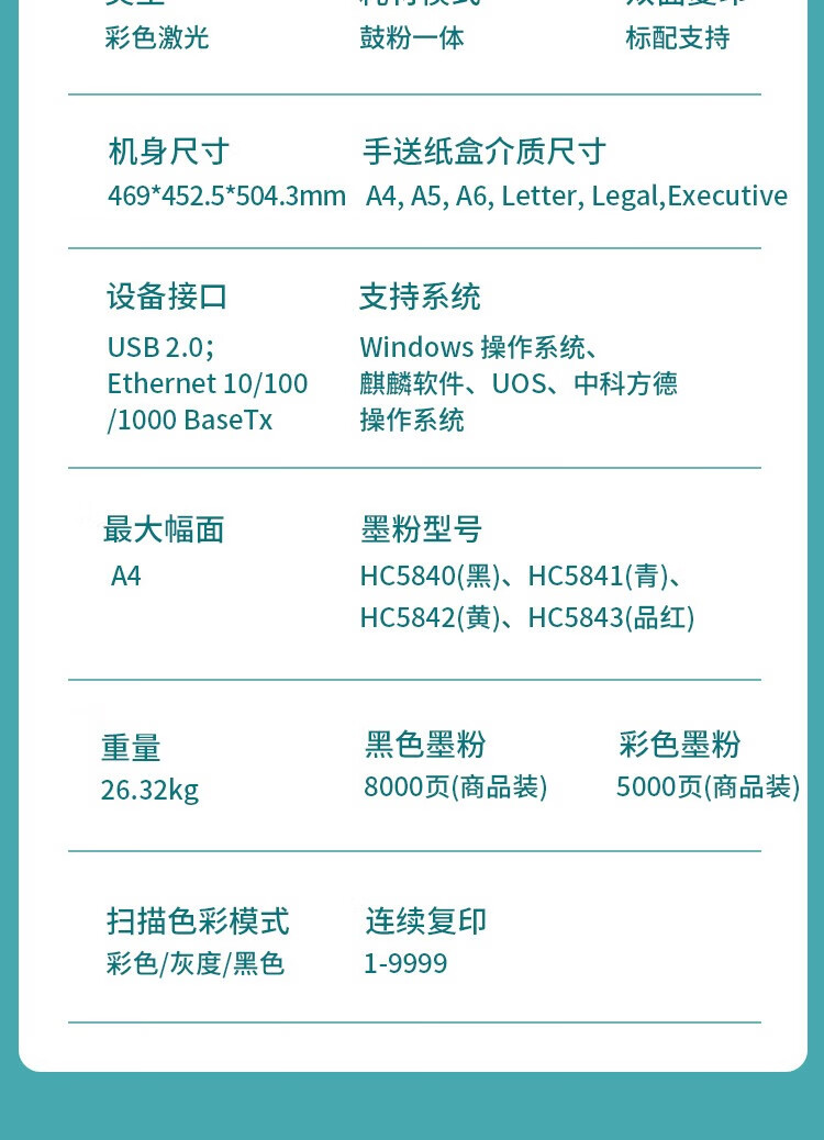 打印类型  :   彩色激光