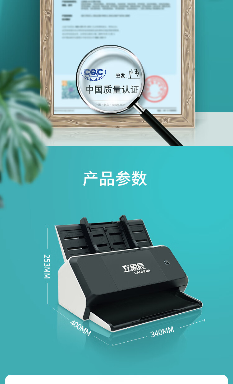 ADF彩色单面扫描速度(A4,200dpi)  :   65