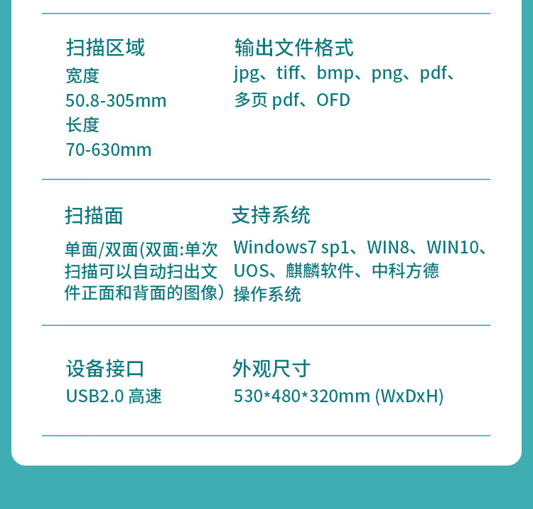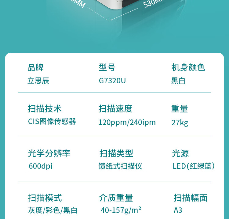 ADF彩色双面扫描速度(A4,200dpi)  :   240