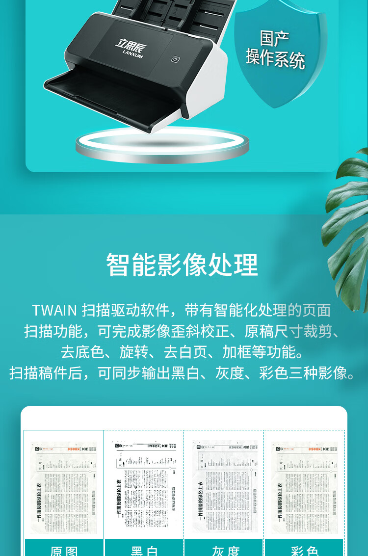 ADF彩色双面扫描速度(A4,200dpi)  :   120