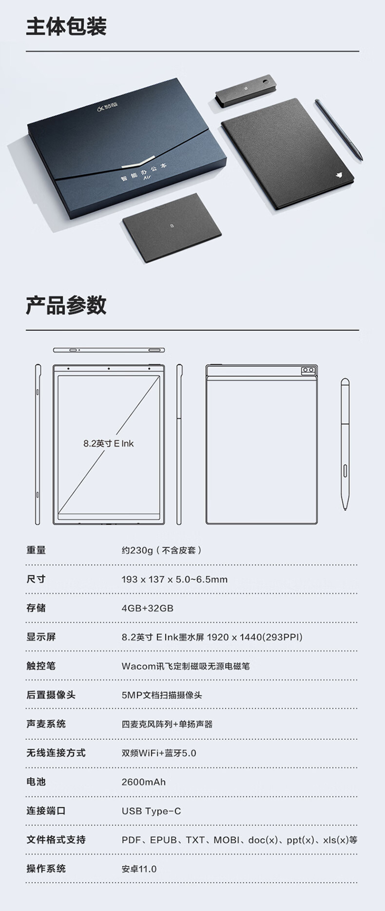 包装清单  :   主机(含保护套)、电磁笔、Type-C数据线、