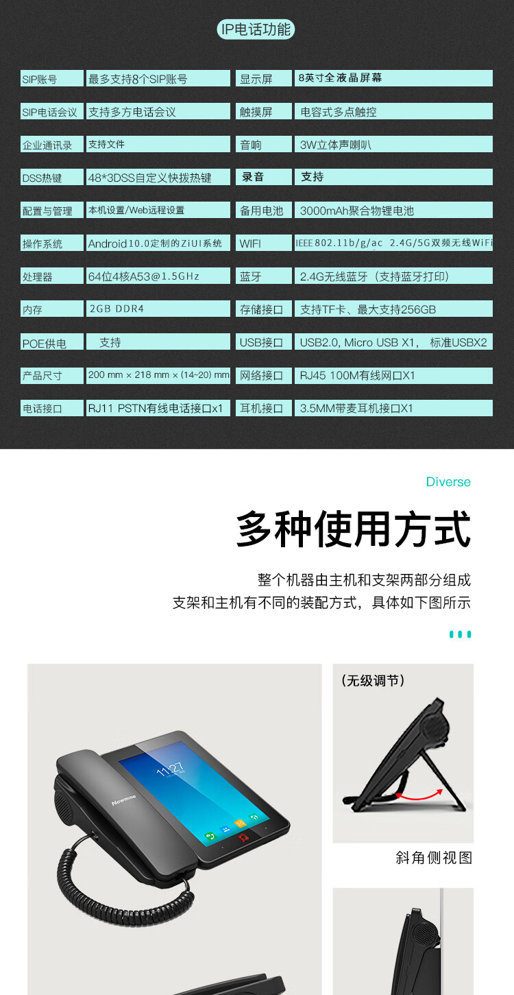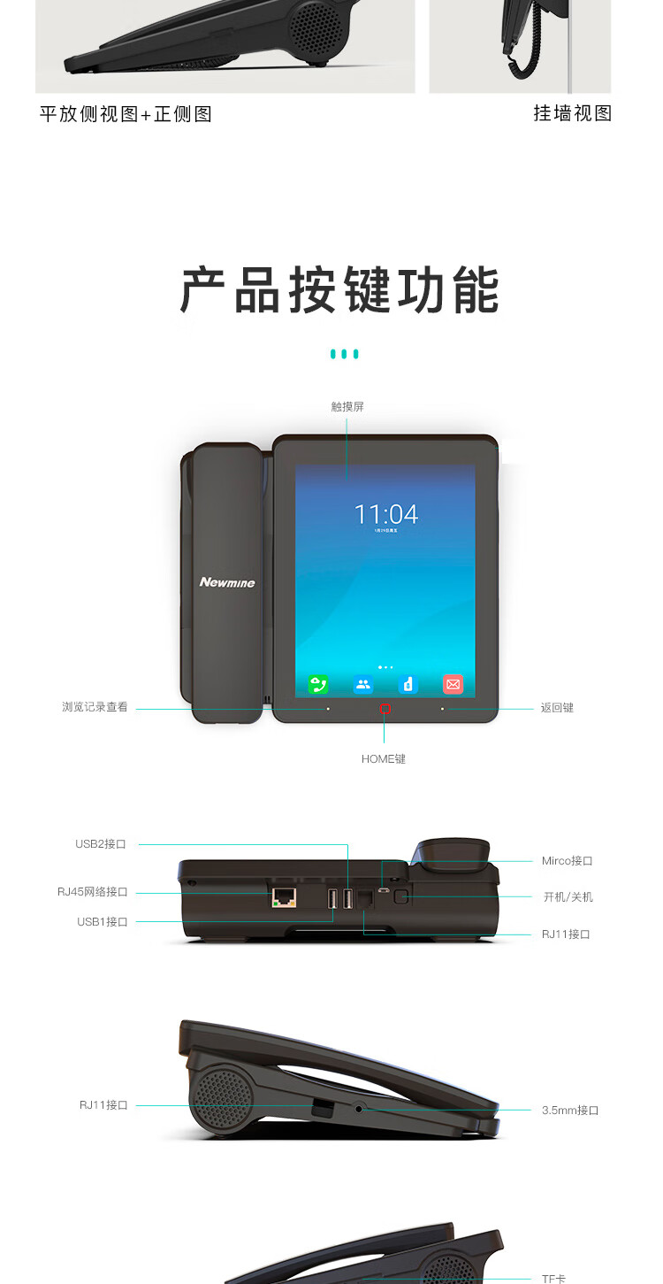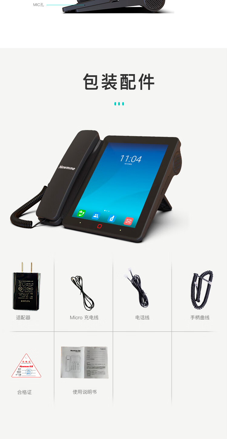 包装清单  :   话机*1,说明书*1,手柄*1,曲线*1,充头*1,USB线*1,电话线*1,合格证*1