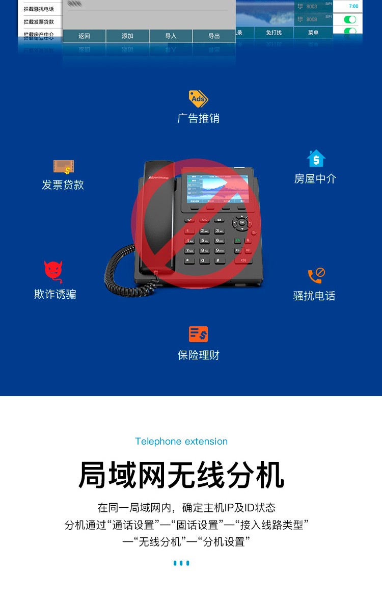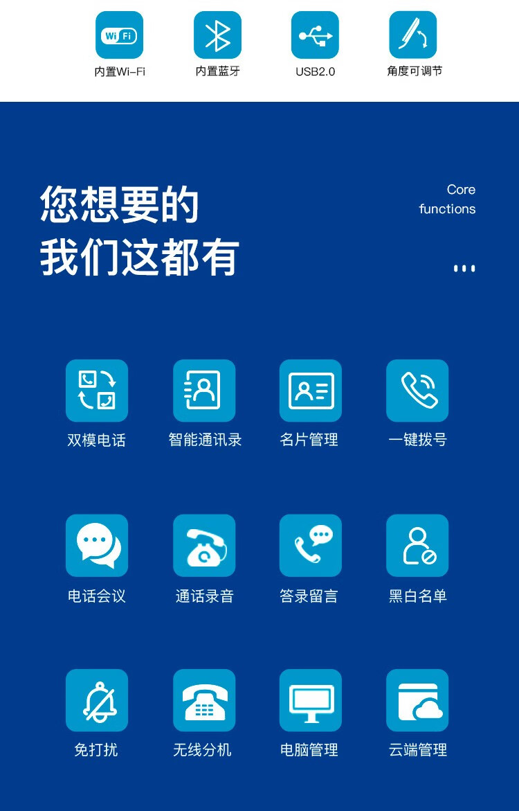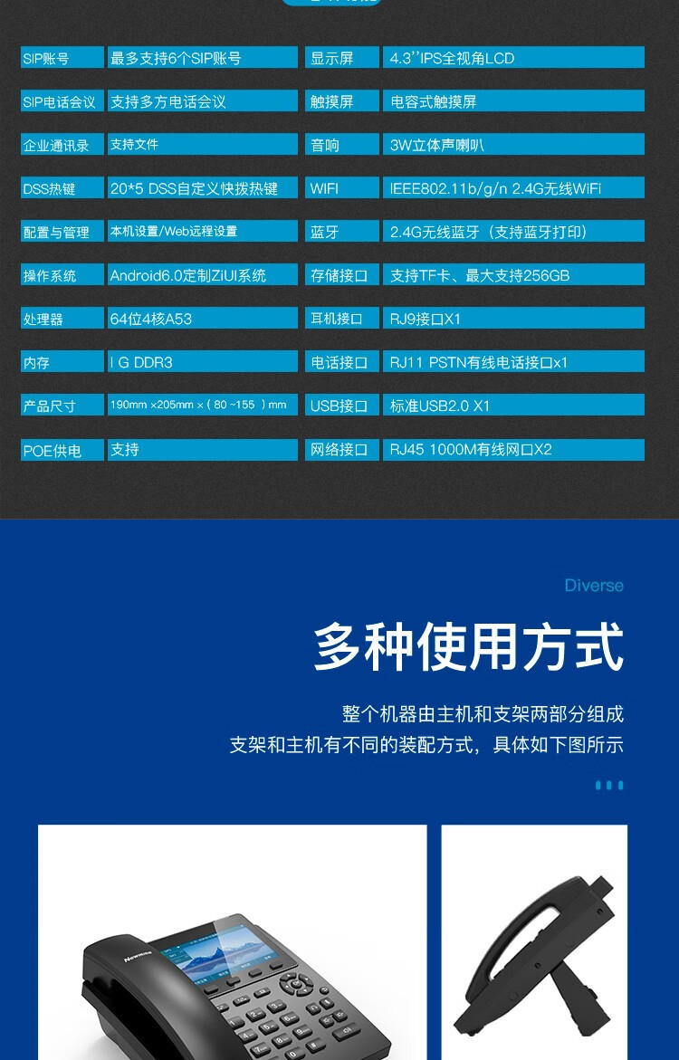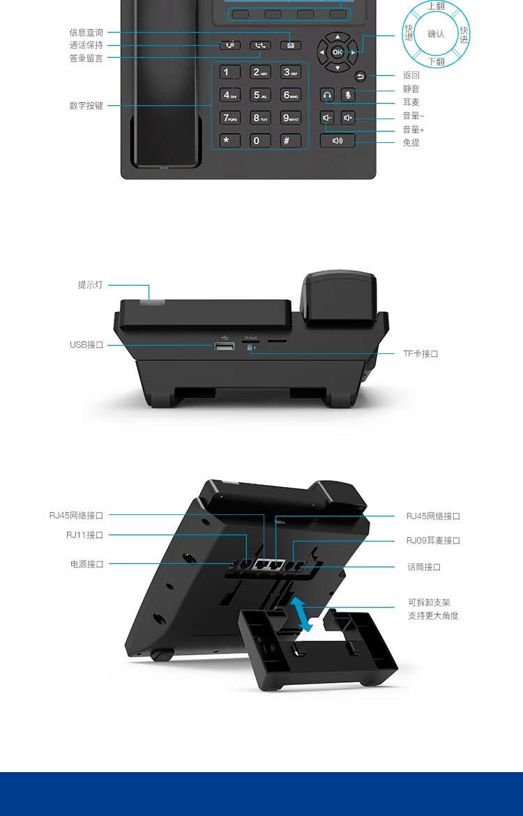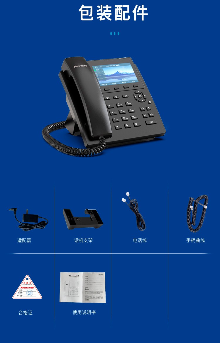 包装清单  :   话机*1,说明书*1,电话线*1,曲线*1,支架*1,电源适配器*1,合格证*1,手柄*1