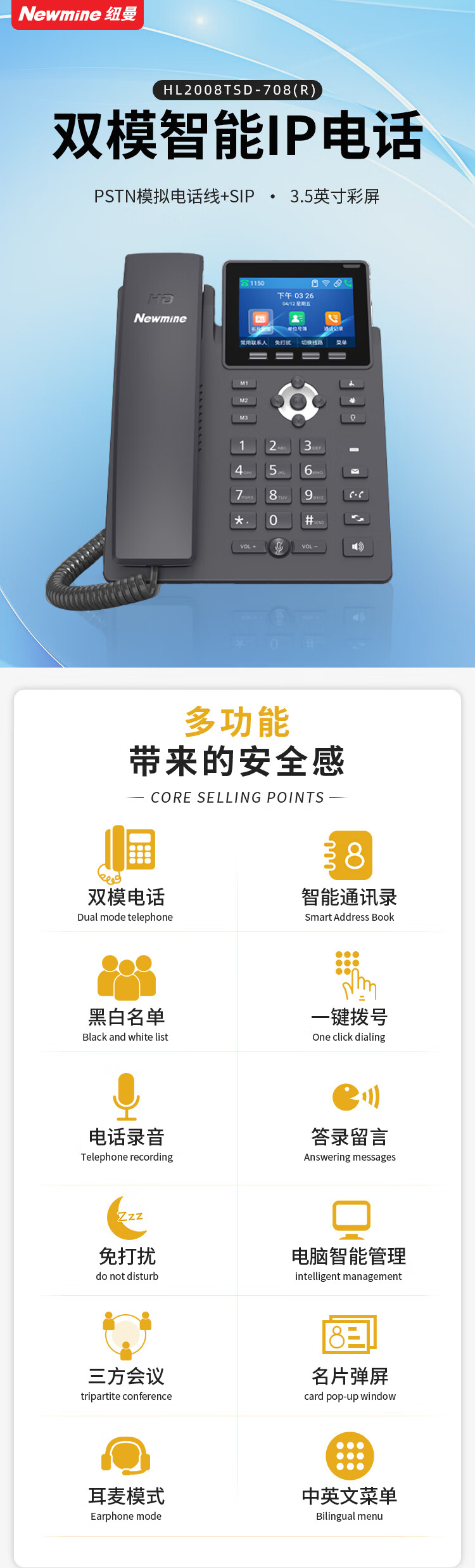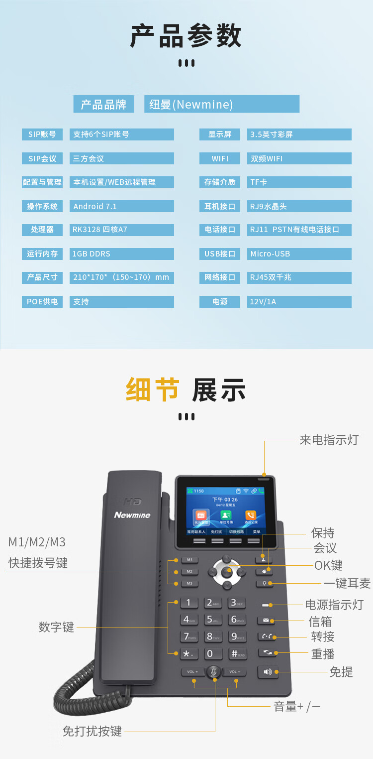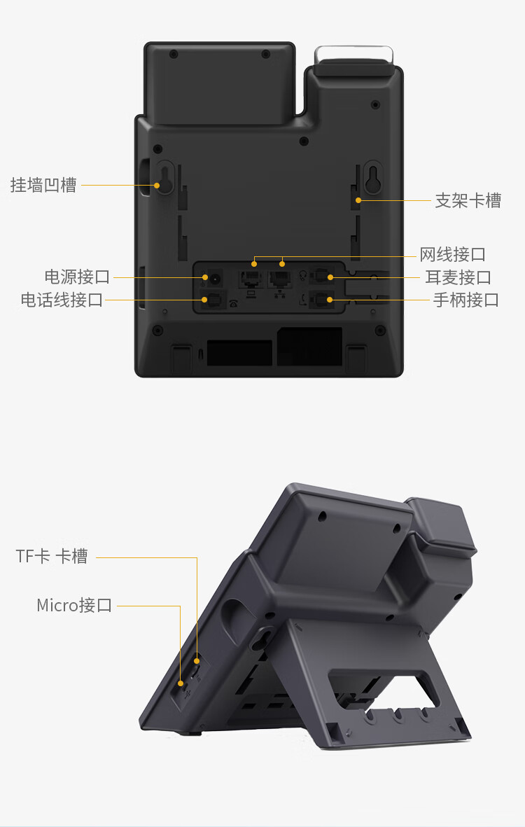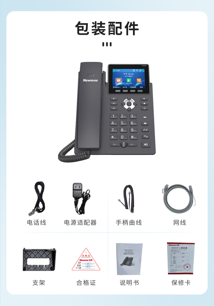包装清单  :   话机*1,适配器*1,支架*1,电话线*1,手柄曲线*1,合格证*1,使用说明书*1