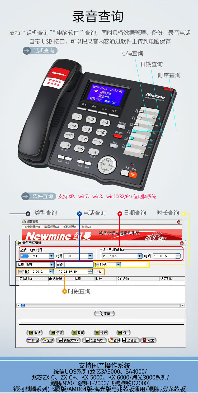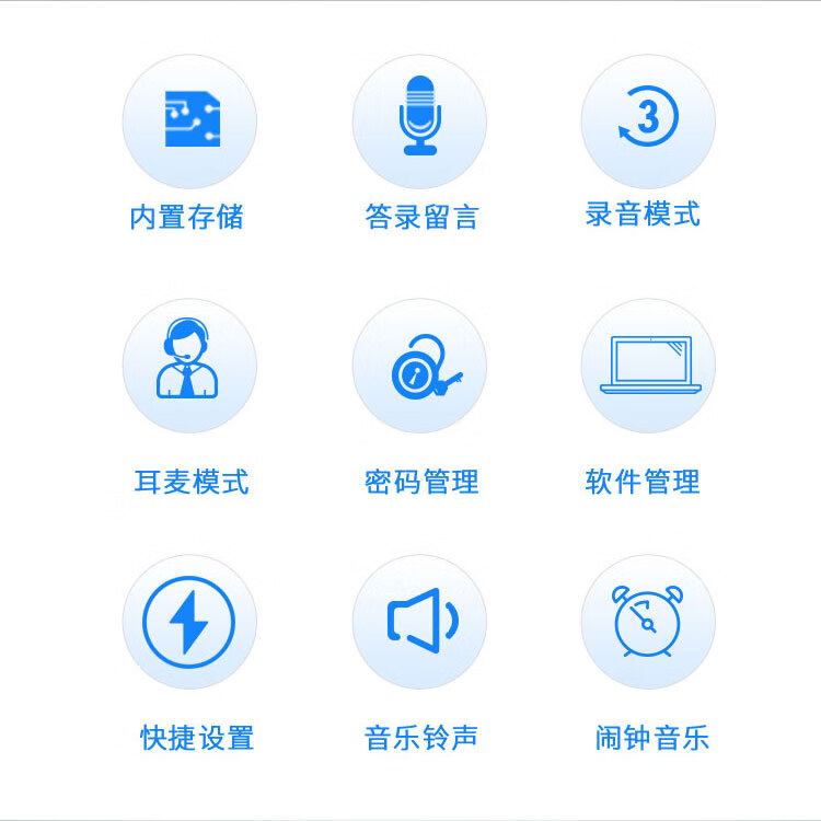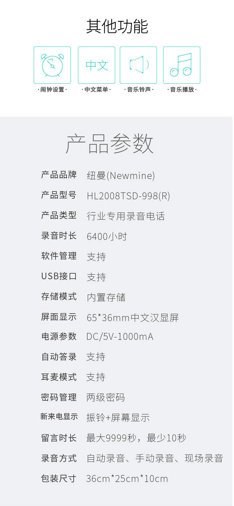 包装清单  :   电话机*1,适配器*1,USB连接线*1,电话线*1,手柄曲线*1,驱动光盘*1,产品维修手册*1,使用说明书*1,合格证*1