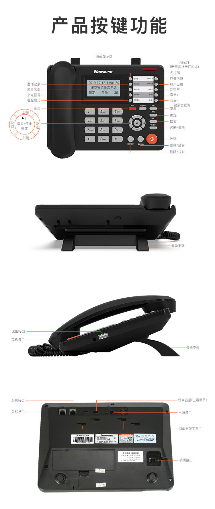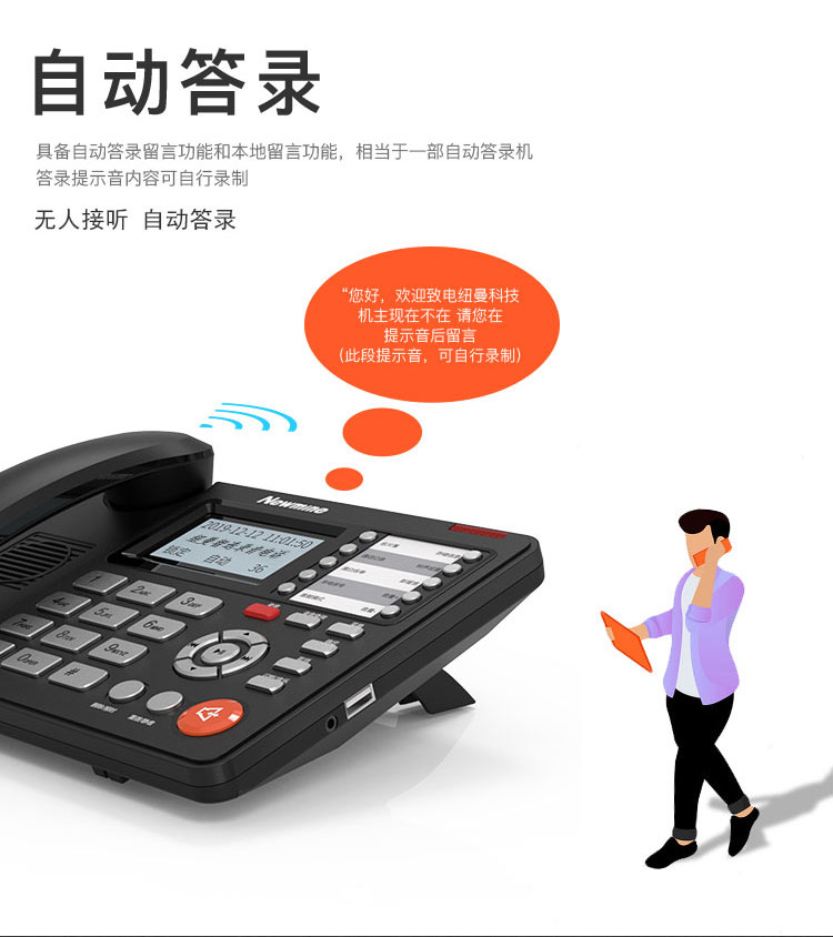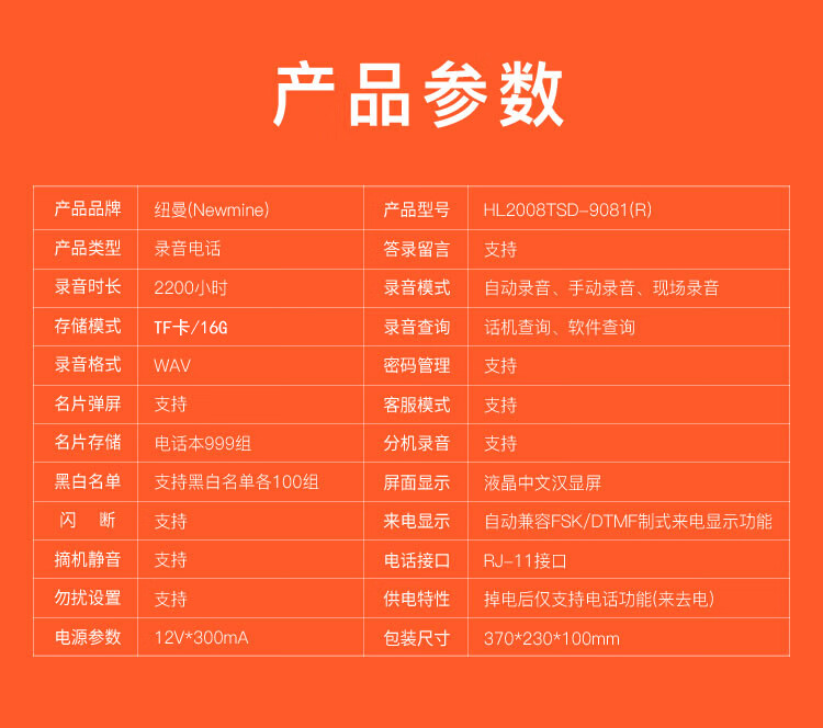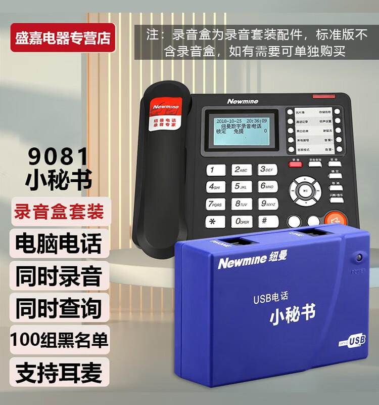 包装清单  :   电话机x1,适配器x1,手柄曲线x1,电话线x1,说明书x1,合格证x1,维修卡x1,驱动光盘x1,USB连接线x1