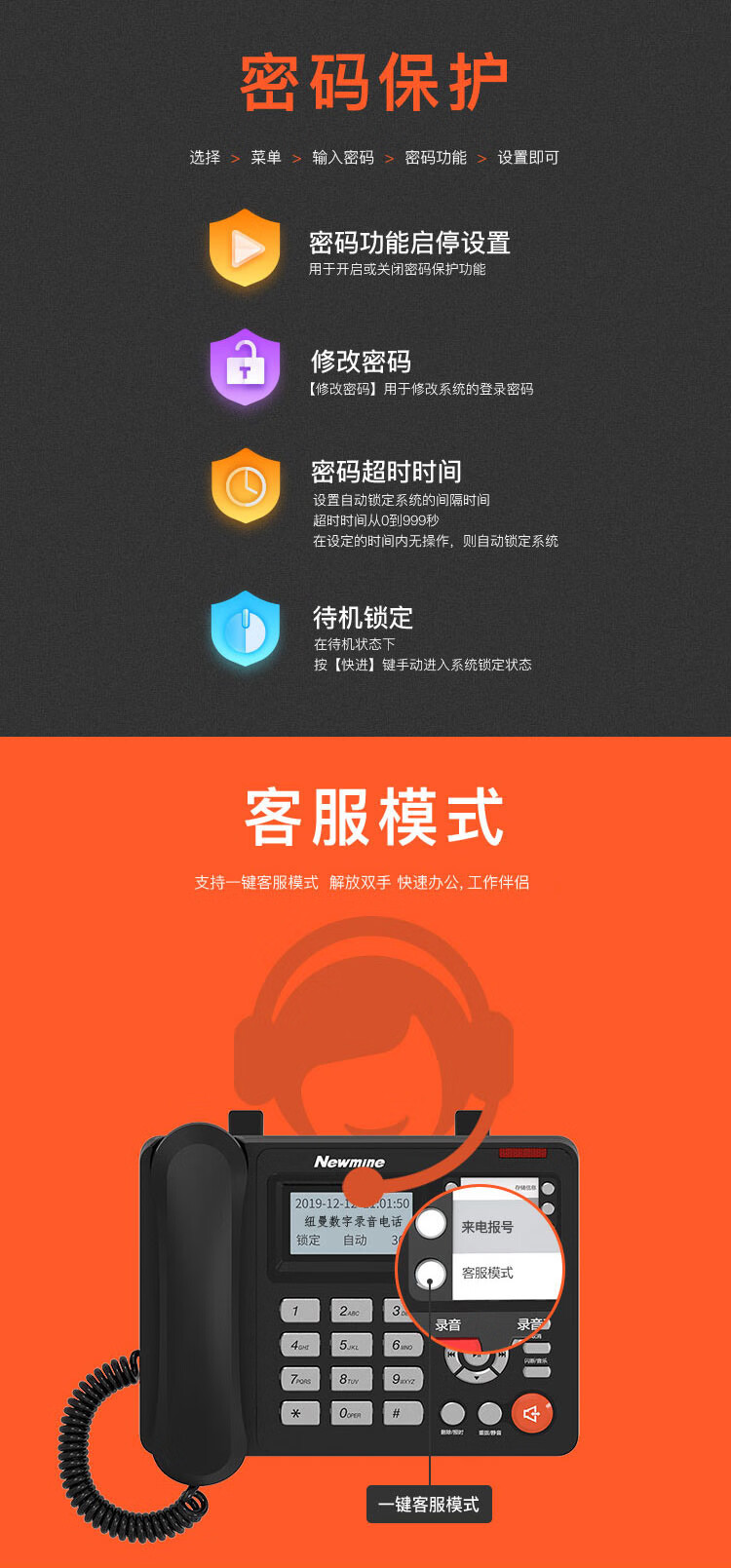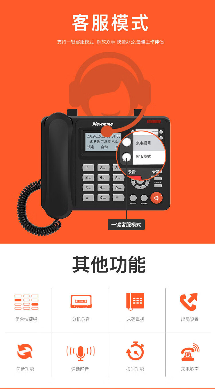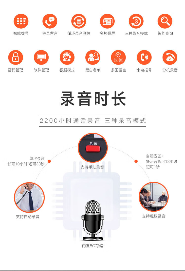 包装清单  :   电话机*1,适配器*1,USB连接线*1,电话线*1,手柄曲线*1,驱动光盘*1,产品维修手册*1,使用说明书*1,合格证*1
