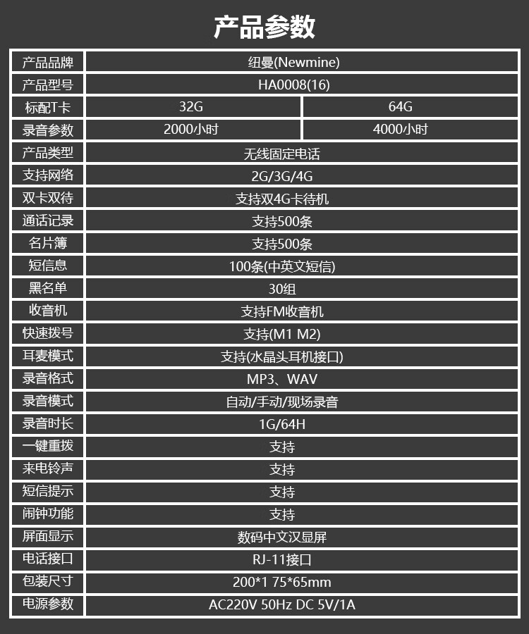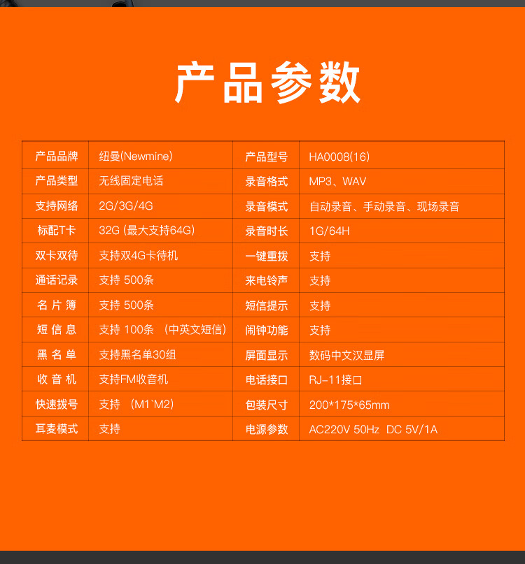 包装清单  :   电话机x1,适配器x1,话机电池x1,手柄线x1,合格证x1,产品维修手册x1,使用说明书x1.