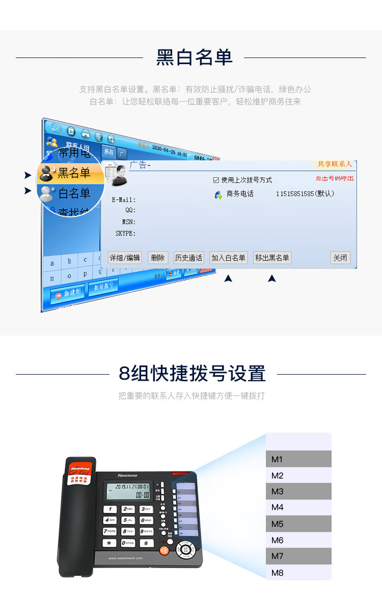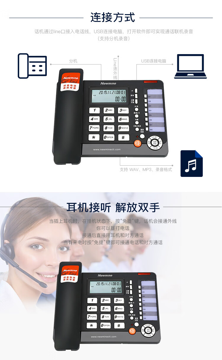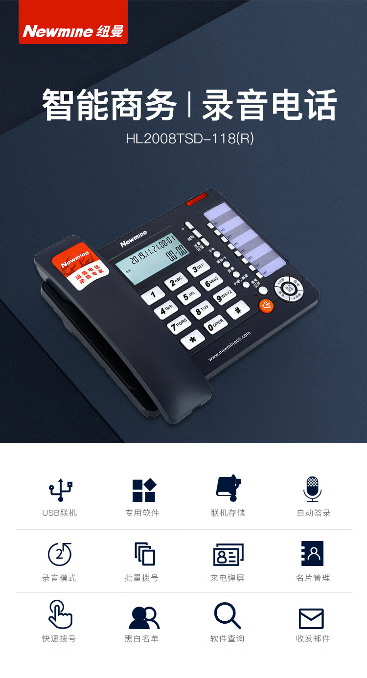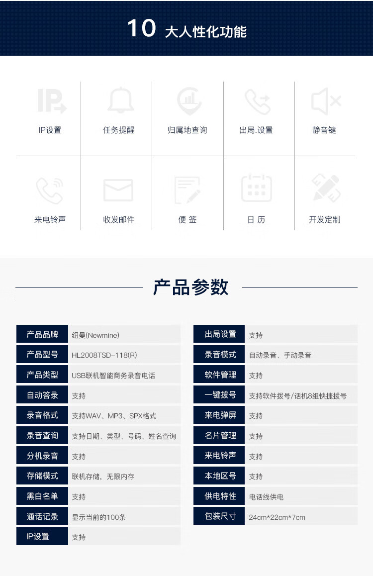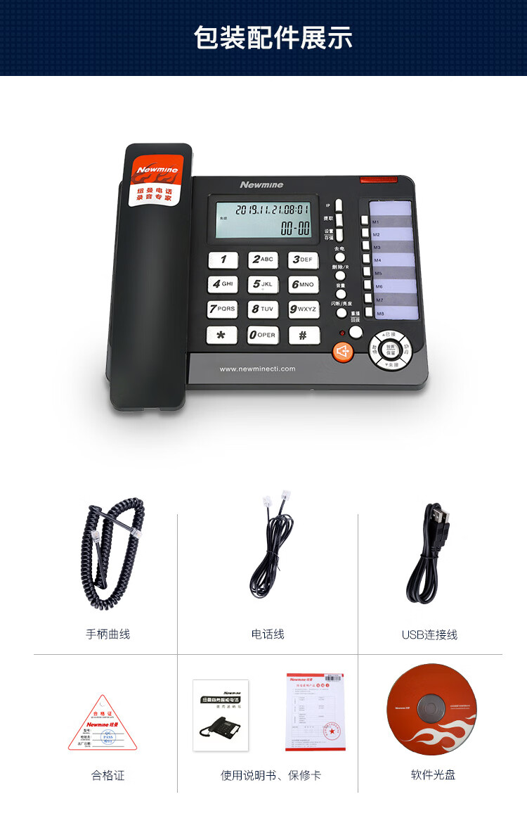 包装清单  :   电话机x1,电话线x1,手柄x1,手柄线x1,说明书x1,保修卡x1,合格证x1,电源x1