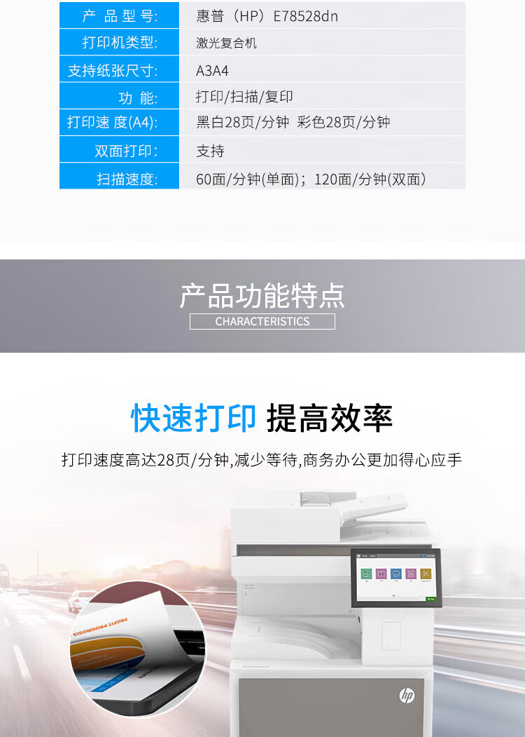黑白打印速度(页/分钟 ppm)  :   28