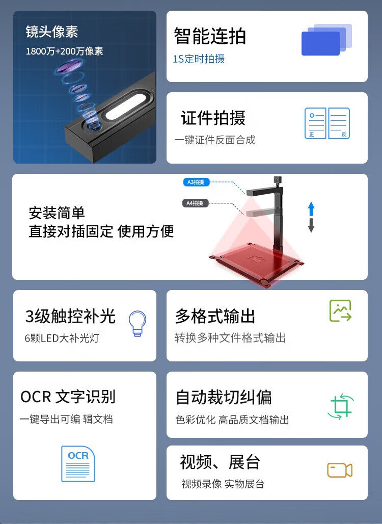 ADF彩色双面扫描速度(A4,200dpi)  :   120