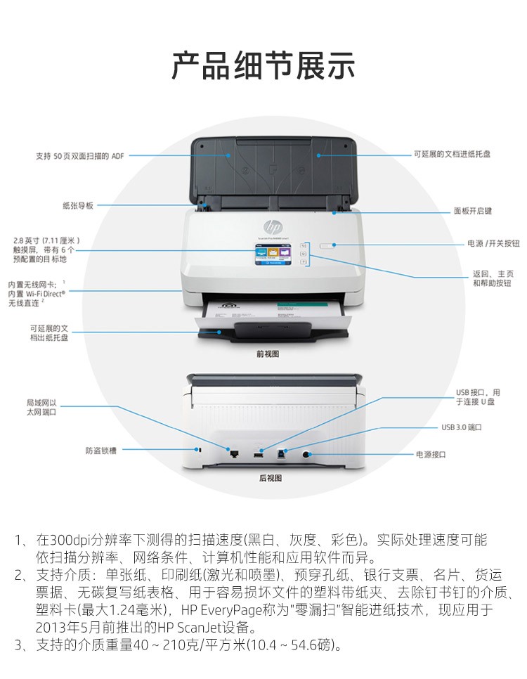 ADF彩色单面扫描速度(A4,200dpi)  :   40