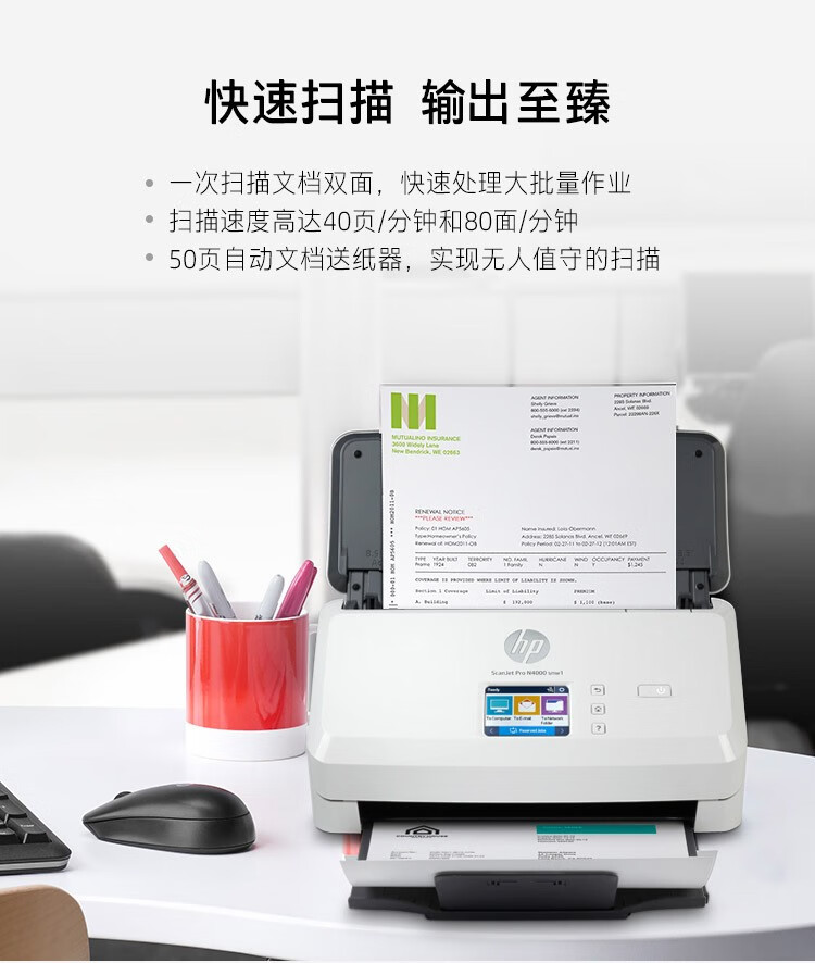ADF彩色双面扫描速度(A4,200dpi)  :   80