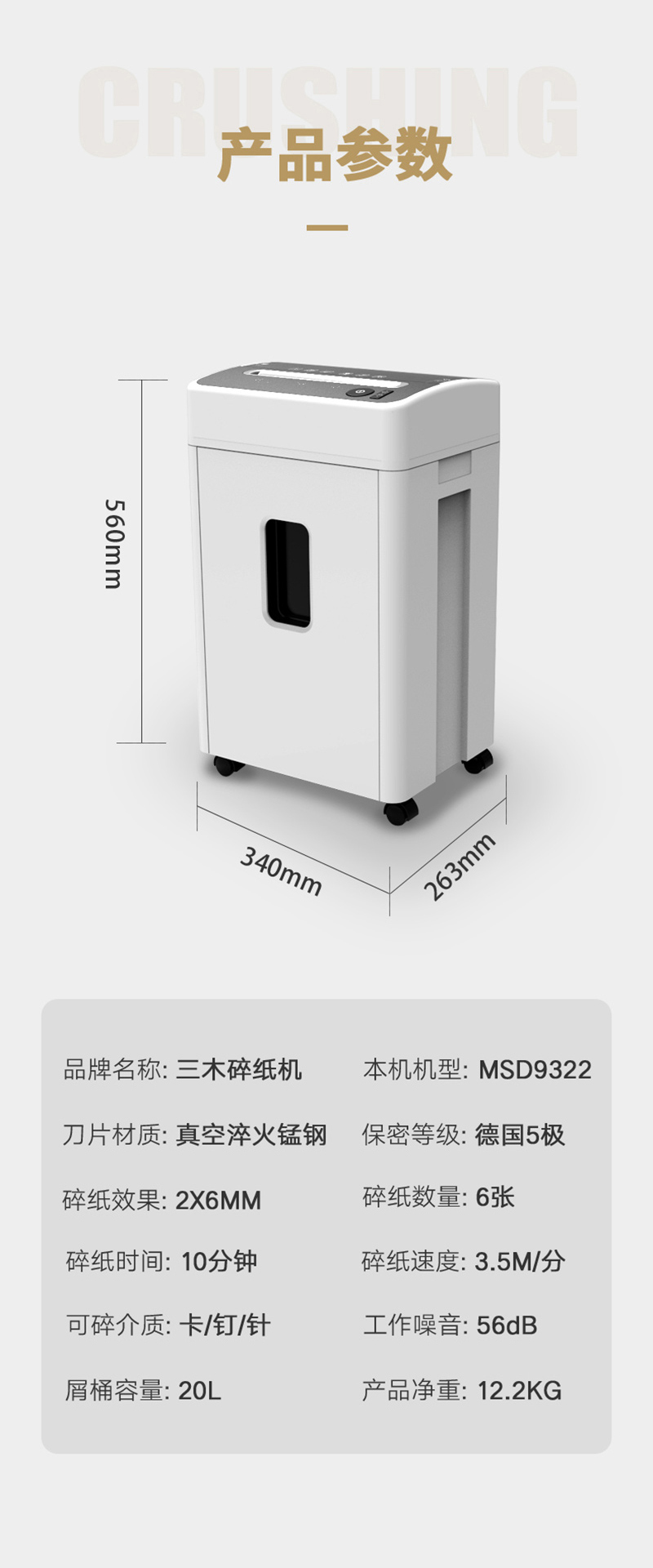 碎纸宽度(mm)  :   220